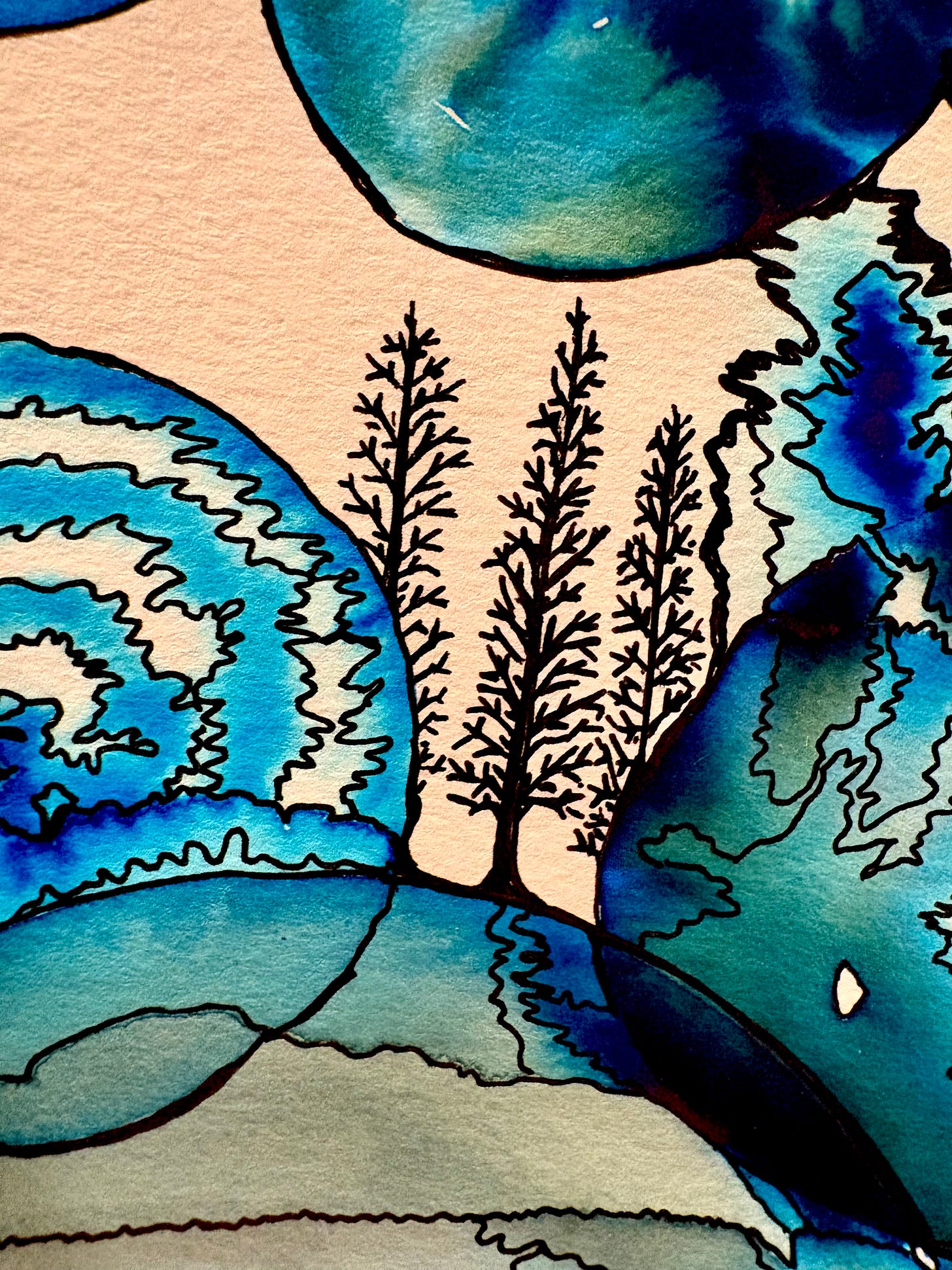 Last year I fell in love with ink, specifically the inks from Birmingham Pen Company. They are luscious and rich, and I’ve become a bit obsessed with their colors. So, I chose a simple premise: meditative ink explorations. Put some ink on paper. See what happens. Add some outlines, designs. Play. Meditate. Get lost in the process